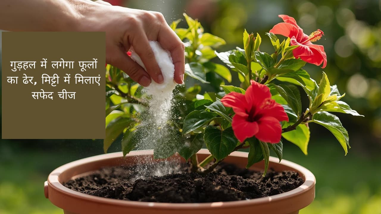 Red, pink, white and yellow flowers are the hallmark of hibiscus. Many times the plants remain green, but flowers appear less. Many times Gardner is not able to know the reason behind this. Even a green plant needs proper nutrition. If you also want to see flowers in your hibiscus plant, then definitely add a white thing to it.
