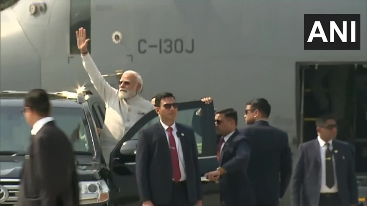 #WATCH | Assam witnesses a historic moment as Prime Minister Narendra Modi lands at the Emergency Landing Facility (ELF) on Moran Bypass in Dibrugarh. Here, he will witness the aerial display of fighters, transports and helicopters. The ELF is the first of its kind in Northeast… pic.twitter.com/DOp6lNqAXP