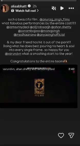 “Doing what he does best pouring his heart & soul into every single frame.. so happy for you @varundvn what a smashing start to the year! Congratulations to the entire team,” Alia added.