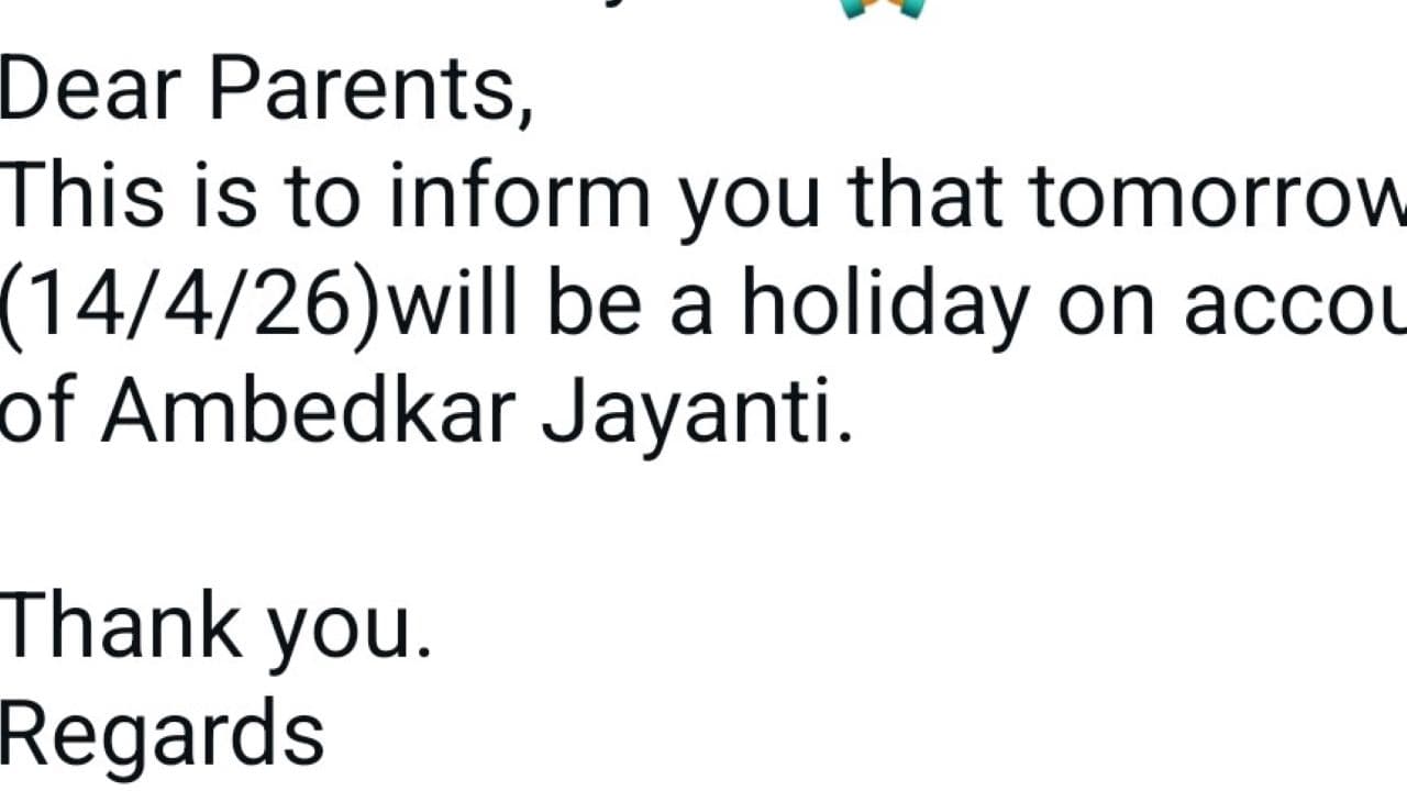 Tomorrow, April 14 (Tuesday), marks Dr. B.R. Ambedkar Jayanti, the architect of the Indian Constitution. Many states, including Andhra Pradesh and Telangana, have declared a public holiday. Government offices, schools, and even banks will remain closed. If you’ve got the school message, your kids are off!