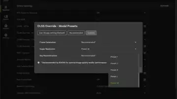 Look for “DLSS Override – Model Presets” and select “Recommended.” You can keep it at Recommended or choose from the presets below.