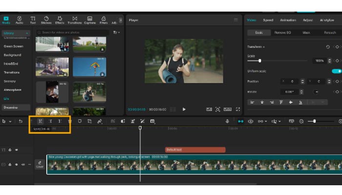 Apply the “Split” feature to remove any part of your ad that you do not want. Add transitions, effects, or overlays from the library of CapCut to finalize your ad.