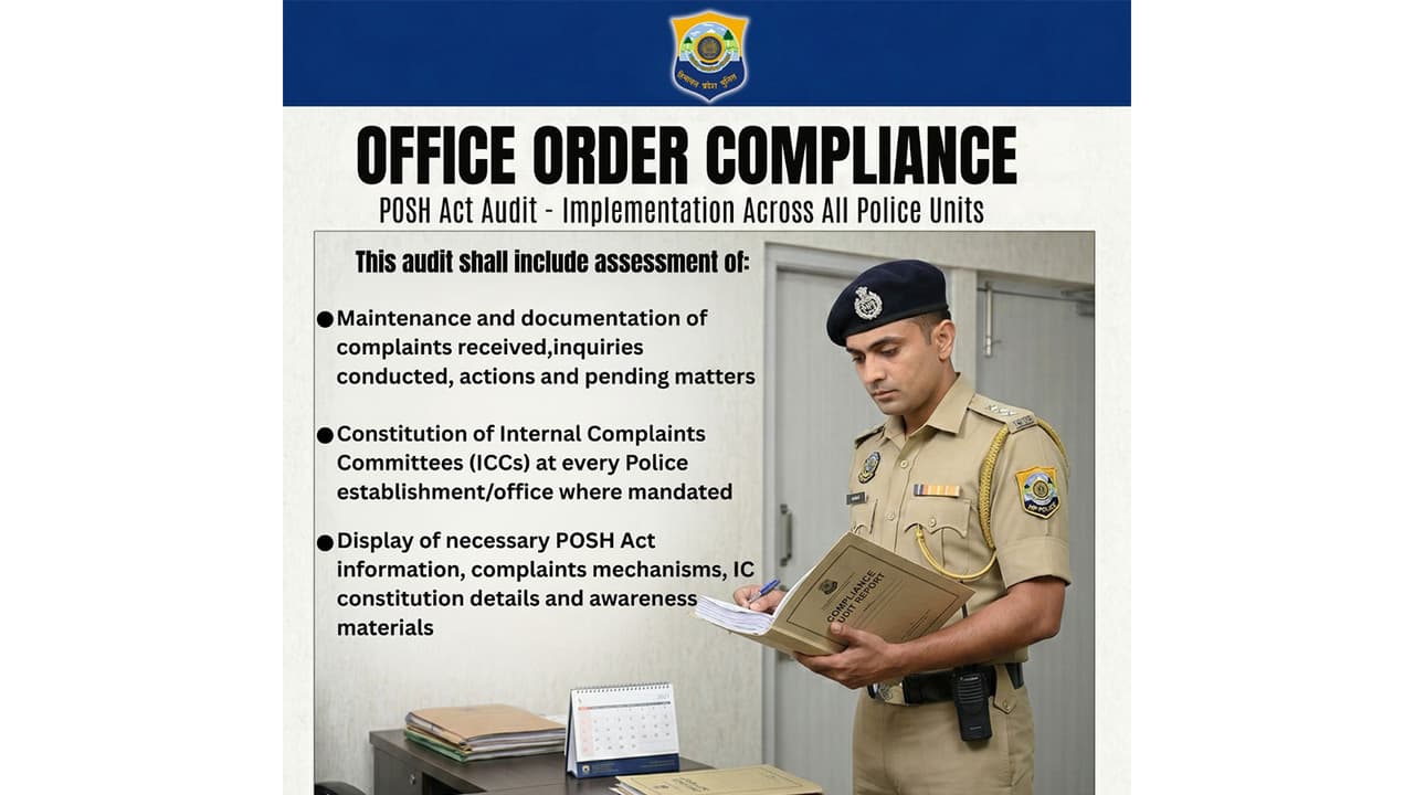 The audit, to be completed within 15 days, will review whether Internal Complaints Committees (ICCs) have been properly constituted in all eligible offices, whether they are functioning effectively, and whether mandatory procedures under the Act are being followed in letter and spirit. The review will also assess maintenance of complaint records, timeliness of inquiry proceedings, awareness measures undertaken for personnel, and compliance with statutory reporting requirements. Senior Police Officers, including SPs and COs, have been instructed to personally supervise the exercise and submit detailed compliance reports to Police Headquarters within the stipulated timeframe.