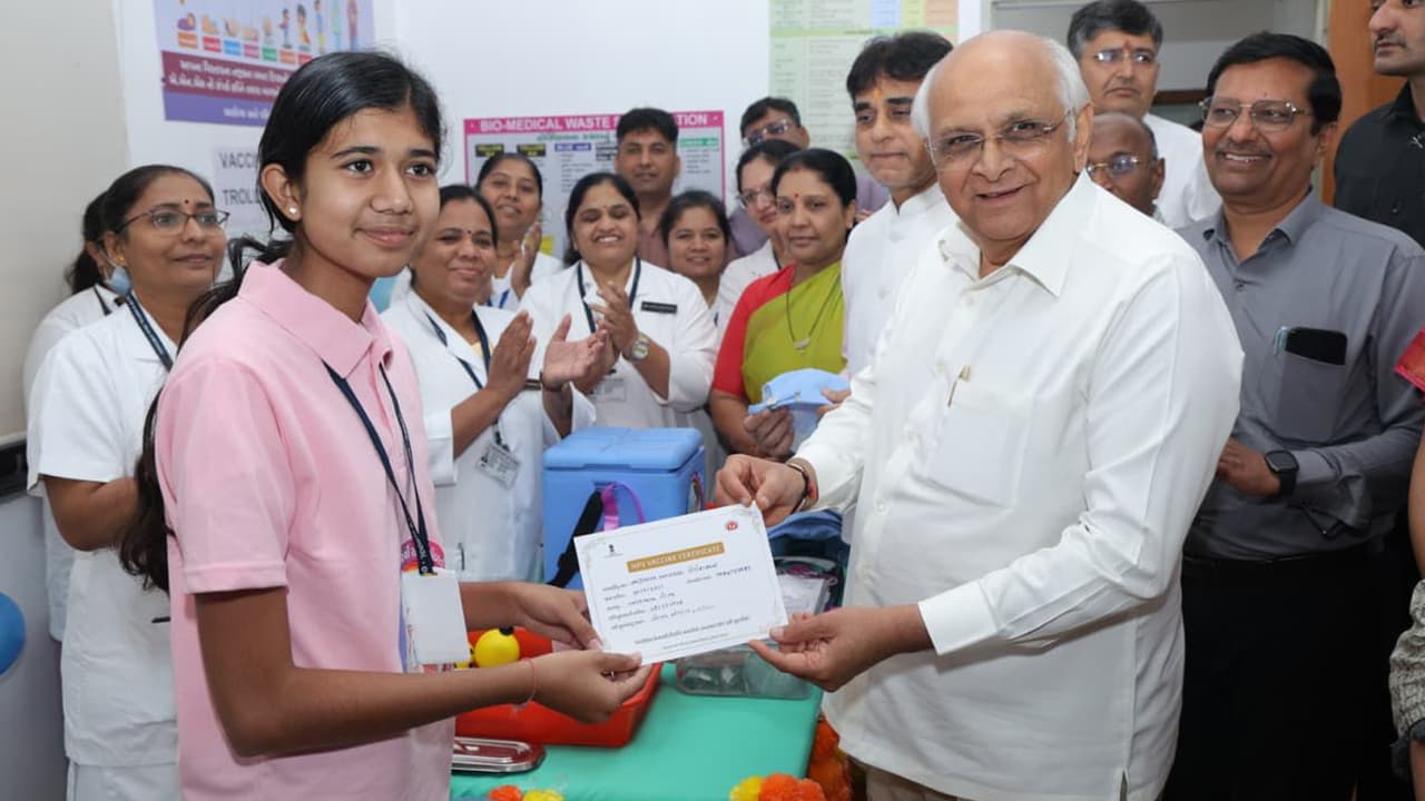 Gandhinagar. Prime Minister Shri Narendra Modi on Saturday launched the nationwide HPV vaccination campaign from Ajmer, Rajasthan. In his virtual presence, the state level HPV vaccination mega campaign was launched in Gujarat in the presence of Chief Minister Shri Bhupendra Patel and Health Minister Shri Prafulbhai Panseria at Sola Civil Hospital, Ahmedabad.