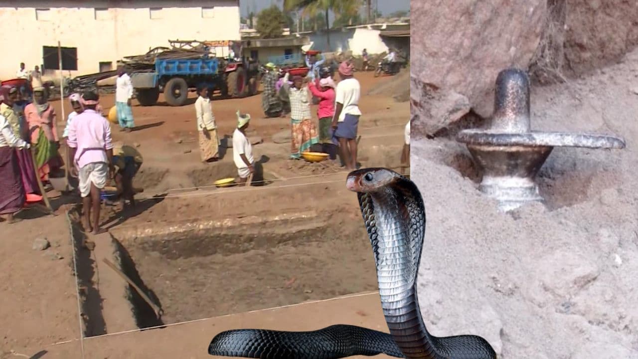 Huge snake and small Shivling found in excavation, created a stir – know where… Karnataka Giant Snake Ancient Shivalinga Unearthed At Lakkundi Excavation Site