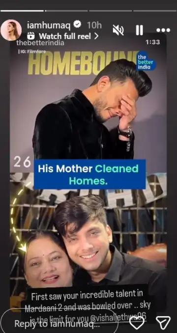 Huma shared a reel on her Instagram story that detailed out Vishal Jethwa and his family’s struggles to make ends meet. In the caption, she wrote, “First saw your incredible talent in Mardaani 2 and was bowled over…sky is the limit for you.”