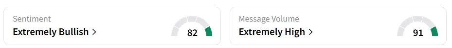 IBM stock traded 0.3% higher in Friday’s pre-market session. On Stocktwits, retail sentiment around the stock remained in ‘extremely bullish’ territory amid ‘extremely high’ message volume levels.