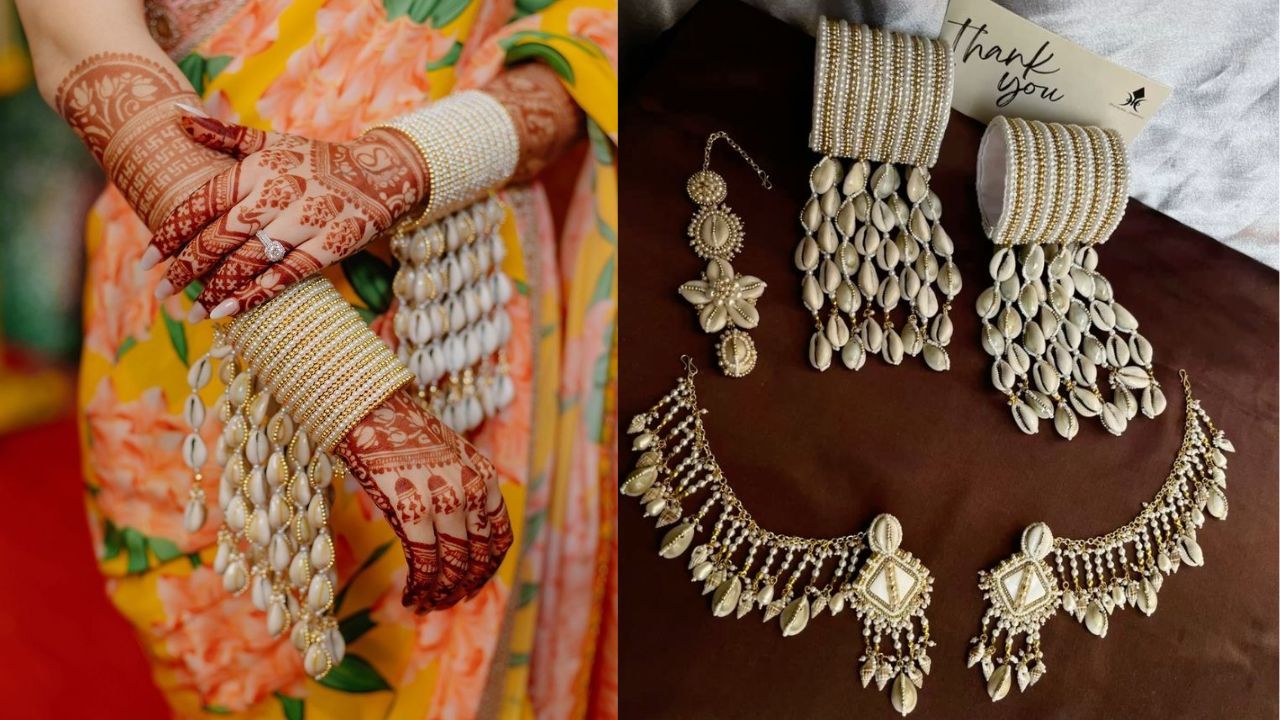 Trendy Conch Shell Jewellery: Weddings start after Diwali, Chhath and Ekadashi. In such a situation, this time instead of wearing flower jewelery in turmeric and mehendi, wear fashionable designs of trendy conch shell jewellery. This is not just jewellery, it is a style statement for your wedding.