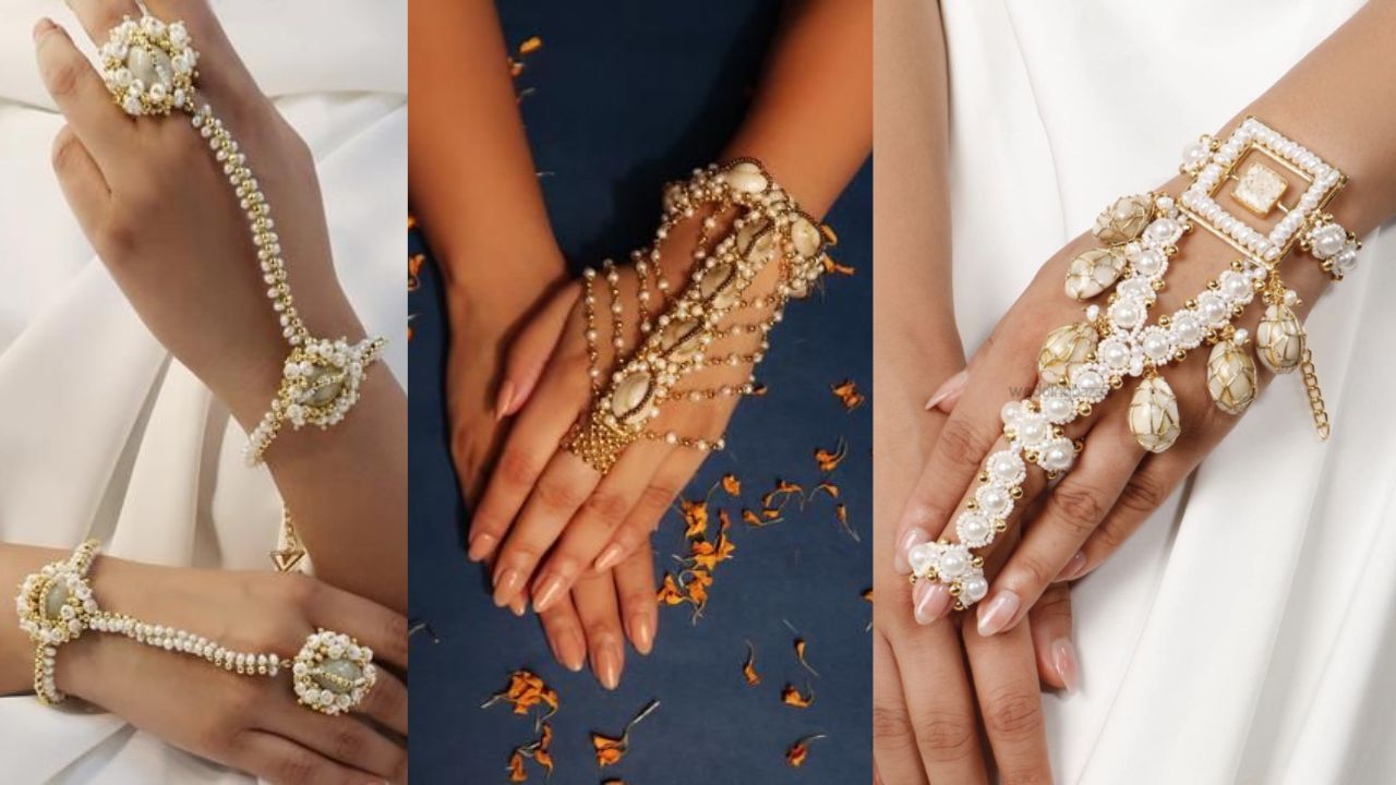Nowadays people are wearing hand flowers in Haldi and Mehndi ceremonies, if you want, you can also wear modern conch shell hand flowers to give a trendy and beautiful look to your hands. This will give a girlish and classy look.