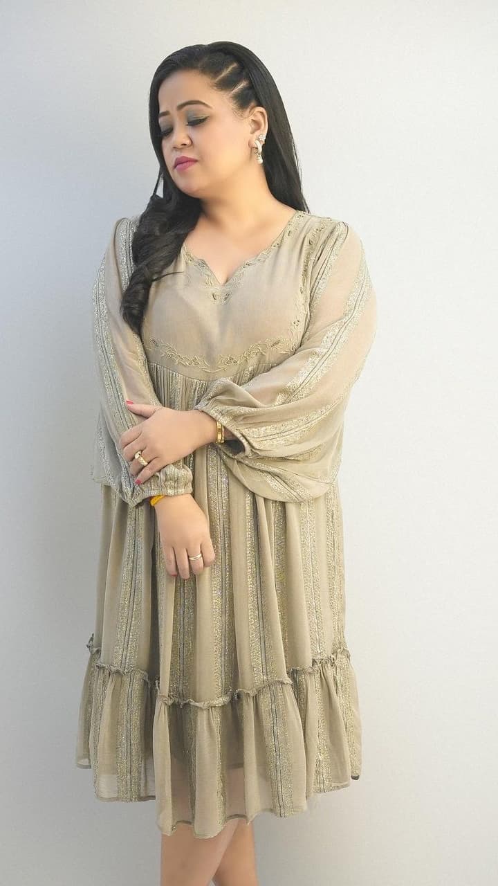 If your weight is high but still wants to look slim, then you can dress up like Bharti Singh. The pleased pink skirt and transparent slug will look beautiful on the occasion of Diwali.
