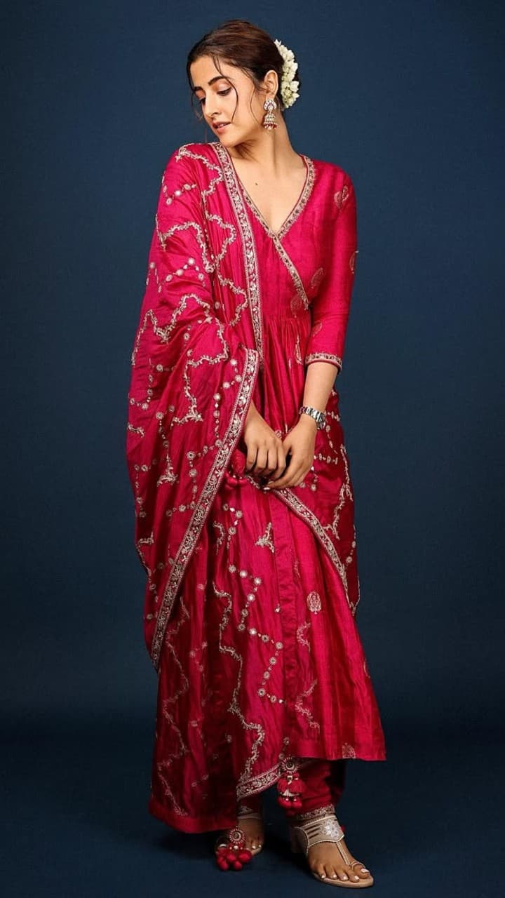 If your height is high then choose Sharara and Kurti set like Nupur Sanon with white color embroidery instead of Anarkali. Not same to same but similar design will be available for 2-3K.