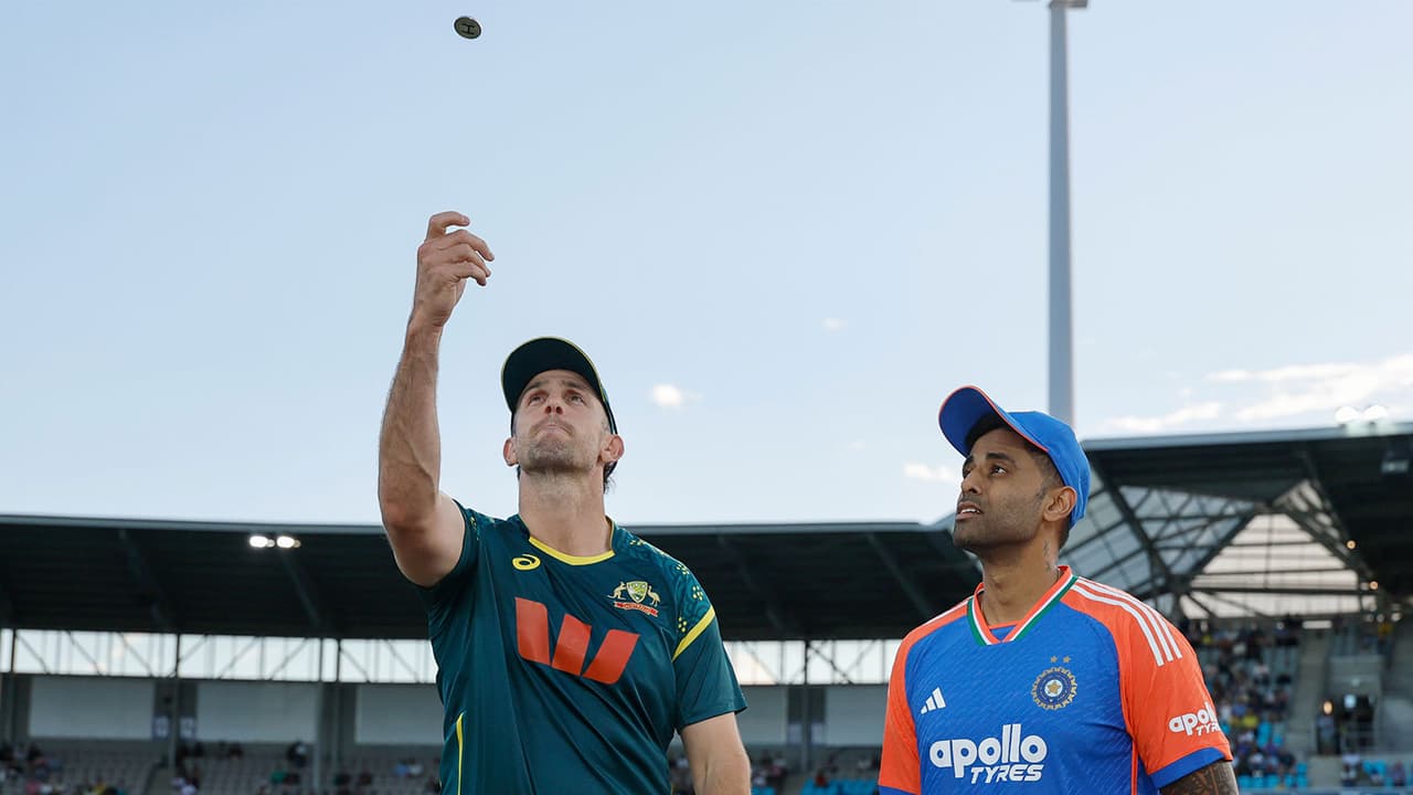 Team India skipper Suryakumar Yadav won the toss and elected to field first in the third T20I of the five-match series against Australia, which is being played at Bellerive Oval here on Sunday. The hosts currently lead the five-match series 1-0 against the Men in Blue. The series opener between the two sides at Canberra was washed out, whereas the second T20I of the series was won by the Mitchell Marsh-led side by four wickets, which was played at Melbourne.
