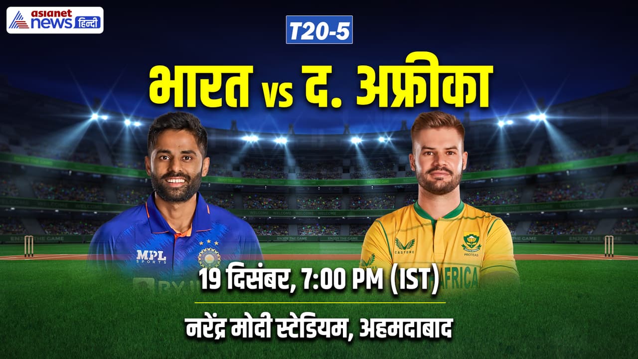 India and South Africa The fifth and last T20 International match will start at 7:00 pm Indian time at the Narendra Modi Stadium in Ahmedabad, with the toss at 6:30 pm. Live telecast of this match will be on Star Sports Network and live streaming on Jio Hotstar. Apart from this, you can also see all the updates related to the match on the website of Asianet News Hindi.