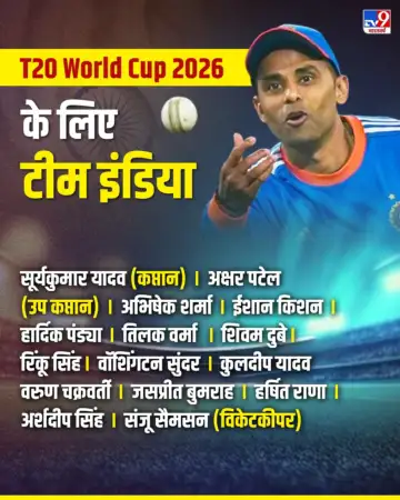 India Squad for T20 World Cup 2026: अगले साल होने वाले T20 वर्ल्ड कप के लिए टीम इंडिया का ऐलान कर दिया गया है. 20 दिसंबर को मुंबई के BCCI हेडक्वार्टर में चीफ सेलेक्टर अजीत अगरकर की अगुवाई में भारतीय क्रिकेट टीम के चयनकर्ताओं की बैठक हुई, जिसमें उन 15 खिलाड़ियों के नामों पर मुहर लगी जो सूर्यकुमार यादव की कप्तानी में T20 वर्ल्ड कप 2026 में खेलते दिखेंगे.