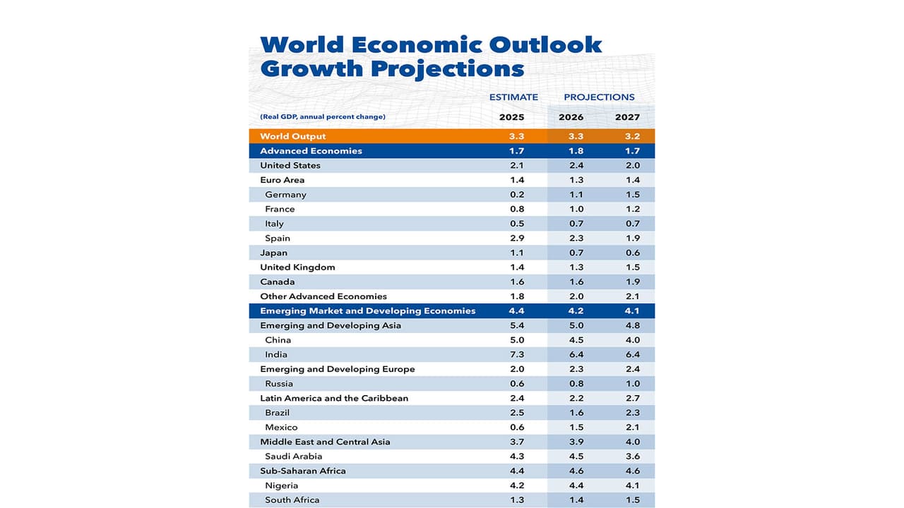 India is set to remain the world’s fastest-growing major economy, projects the IMF. The economy is estimated to grow by 7.3% in 2025 and 6.4% in 2026-27, well above the global average, driven by resilient domestic demand and public investment.