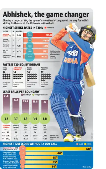 Two balls now separate Abhishek’s fifty from Yuvraj Singh’s record of 12 balls in 2007. And going by the pace with which Abhishek is rewriting records, it may be a matter of time. “That’s more than impossible for anyone,” said Abhishek when asked about Yuvraj’s record. “But still, you never know. Any batsman could do it because I think all the batters have been batting really well in this series as well and going forward, it’s going to be fun.”