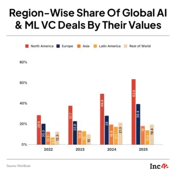 According to him, mega AI rounds happen in the US more because of the track record of producing globally successful tech companies and the abundance of capital and large corporate markets that can quickly adopt these platforms.