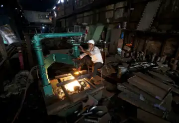 FILE PHOTO: A worker operates a machine inside a small scale manufacturing unit in Mumbai India February 1 2023. REUTERS/Niharika Kulkarni/File Photo