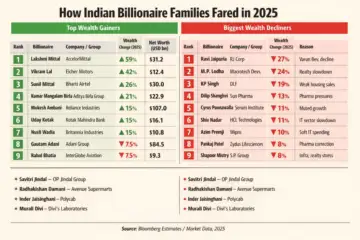 India’s wealthiest families witnessed a sharply polarised year in 2025, with a select group of billionaires posting strong double-digit gains while several others saw their fortunes stagnate or decline amid volatile equity markets and global headwinds.