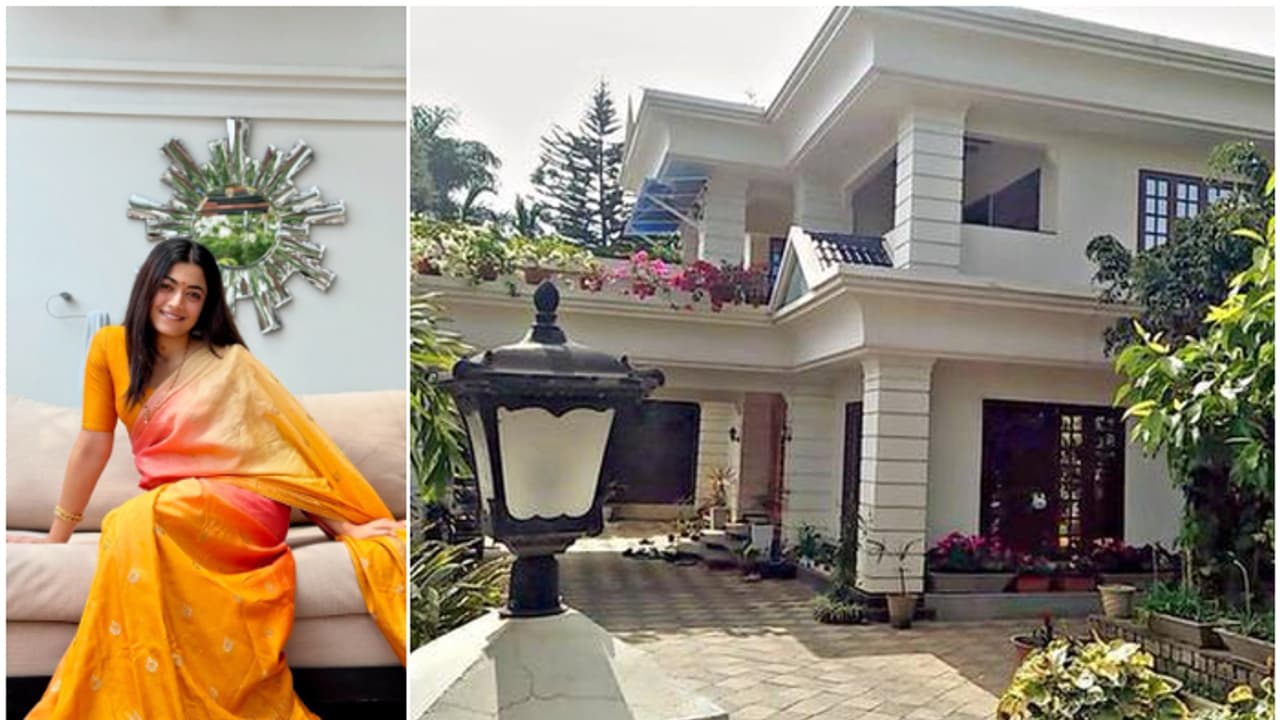 Here’s an inside tour of Rashmika Mandanna’s stunning Bangalore home, featuring a stylish living room, modern kitchen, cozy balcony, lush courtyard, royal swing, and a special space for her beloved pet dog.