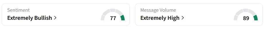 Intel stock traded 16% lower on Friday morning and was the top-trending equity ticker on Stocktwits. Retail sentiment around the stock changed to ‘extremely bullish’ from ‘bullish’ territory the previous day amid ‘extremely high’ message volume levels.
