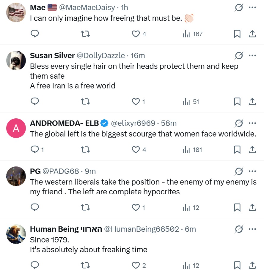 Many social media users described the scenes of women without hijabs and dancing as powerful symbols of defiance and hope. Some posts framed the moment as a sign of change in society and a call for greater personal freedom. Others expressed concern that those seen celebrating could face consequences later.
