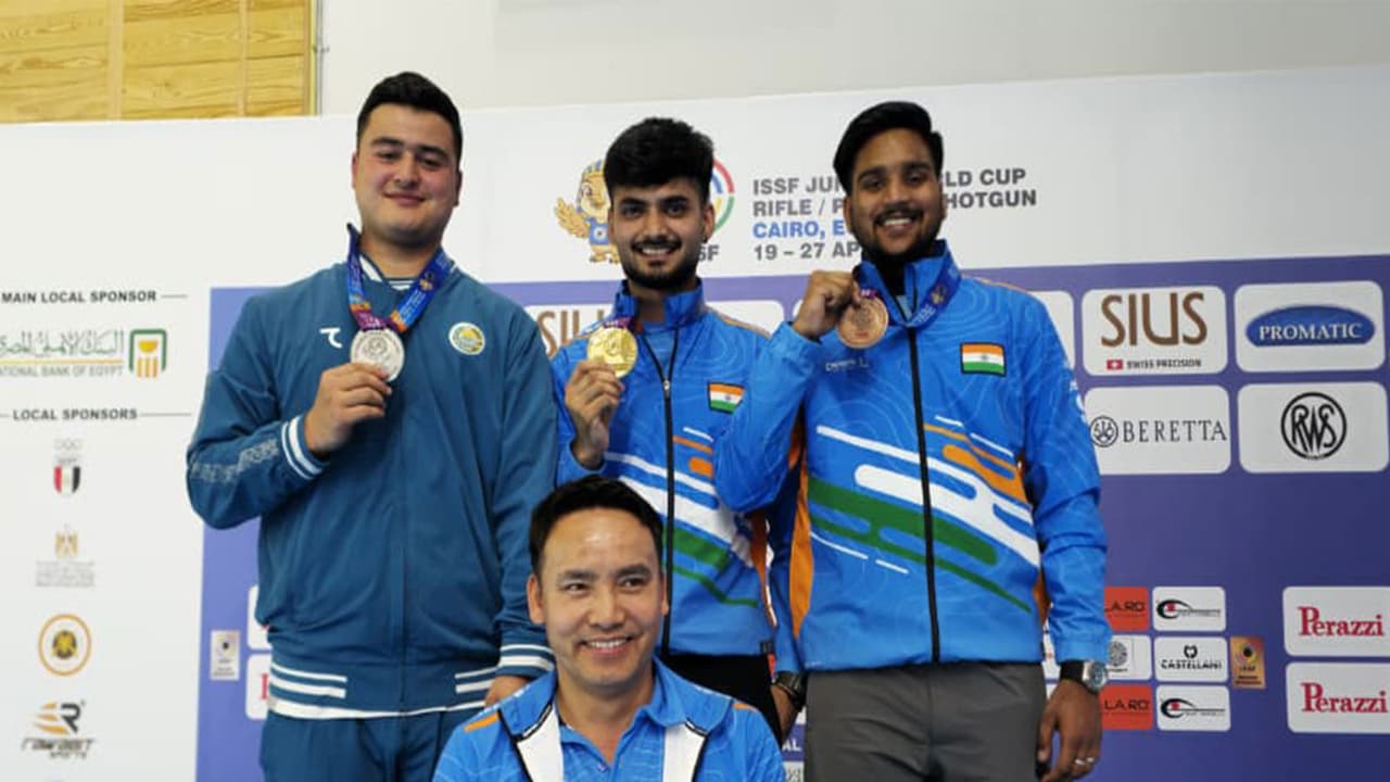 Shiva Narwal won gold in the 10m Air Pistol Men’s Junior event on his return at the ISSF Junior World Cup in Cairo. Chirag Sharma won bronze in the same event, while Panaah Bhugra secured silver in the women’s 10m air rifle on Day One.