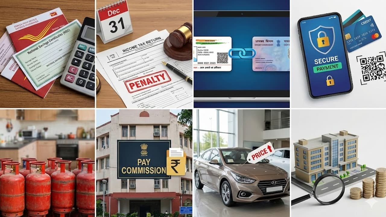 <p>New Rules From January 1, 2026: Several rules, including the 8th Pay Commission, ITR, LPG, car prices, and digital payments, are changing from January 1, 2026. Let’s find out how these will affect your pocket.</p><img><p>2026 brings many changes impacting finances, from banking and taxes to LPG prices and the 8th Pay Commission. Key updates include post office rates, ITR fees, and digital payments.</p><img><p>The government reviews rates for schemes like PPF and SSY quarterly. After a recent RBI repo rate cut, experts expect a reduction in post office scheme interest rates from January 1.</p><img><p>Dec 31 is the deadline for revised/belated ITR for FY 2024-25. Missing it could halt your refund. Filing later requires an updated return with a heavy penalty and no loss claims.</p><img><p>The Dec 31 deadline to link PAN and Aadhaar applies to those who used an enrollment ID for their PAN. Failure to link will make your PAN inoperative, blocking ITR filing and more.</p><img><p>From Jan 1, 2026, digital transaction rules will tighten to fight fraud. UPI apps like Google Pay must use stricter KYC, adding security layers to verification to stop fake accounts.</p><img><p>With CNG/PNG prices dropping from Jan 1, 2026, LPG users may also see a price cut. Oil companies review prices monthly. With crude oil at its lowest since 2021, a drop is likely.</p><img><p>The government has announced the 8th Pay Commission, with recommendations effective from Jan 1, 2026. Central government employees and pensioners can expect a large sum in arrears.</p><img><p>Planning to buy a new car? Prices will rise from Jan 1, 2026. Nissan, BMW, MG, Renault, and Ather will hike prices by up to 3% due to rising raw material costs. Others may follow.</p>
