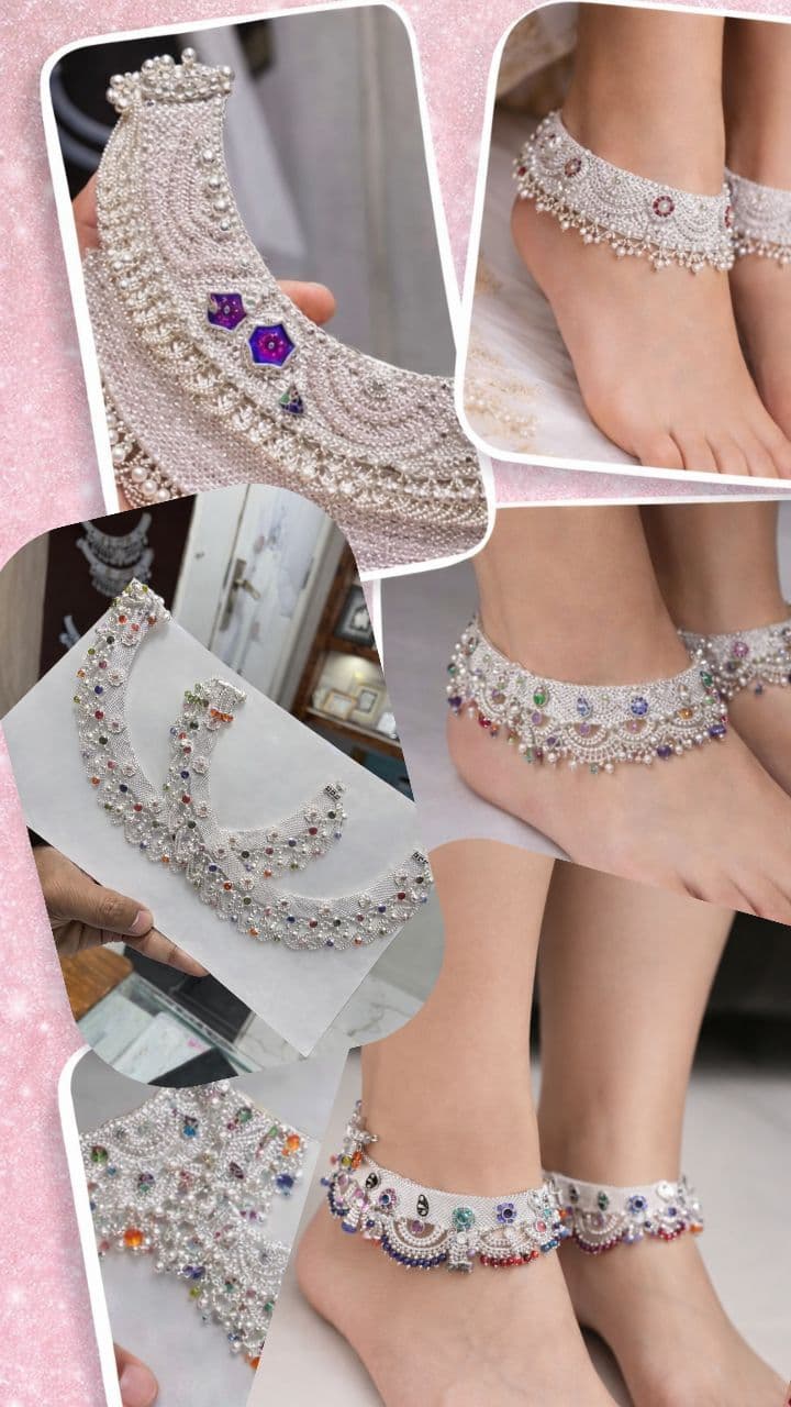 This design of double layer Jhalar Pair is heavy and stylish, which is not less than 20-22 tola. In this, one fringe is in the band of the anklet, and the other layer is in the lower part of the anklet.