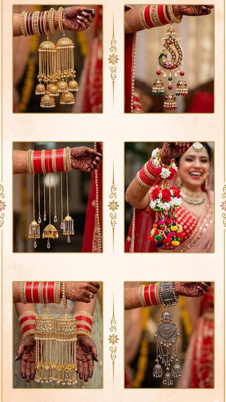If you are wearing a lehenga with silver work, then you can adorn yourself by wearing silver kalire designs. Customized name kalire, lotus design kalire, multilayer chain kalire are among the choices of modern brides.