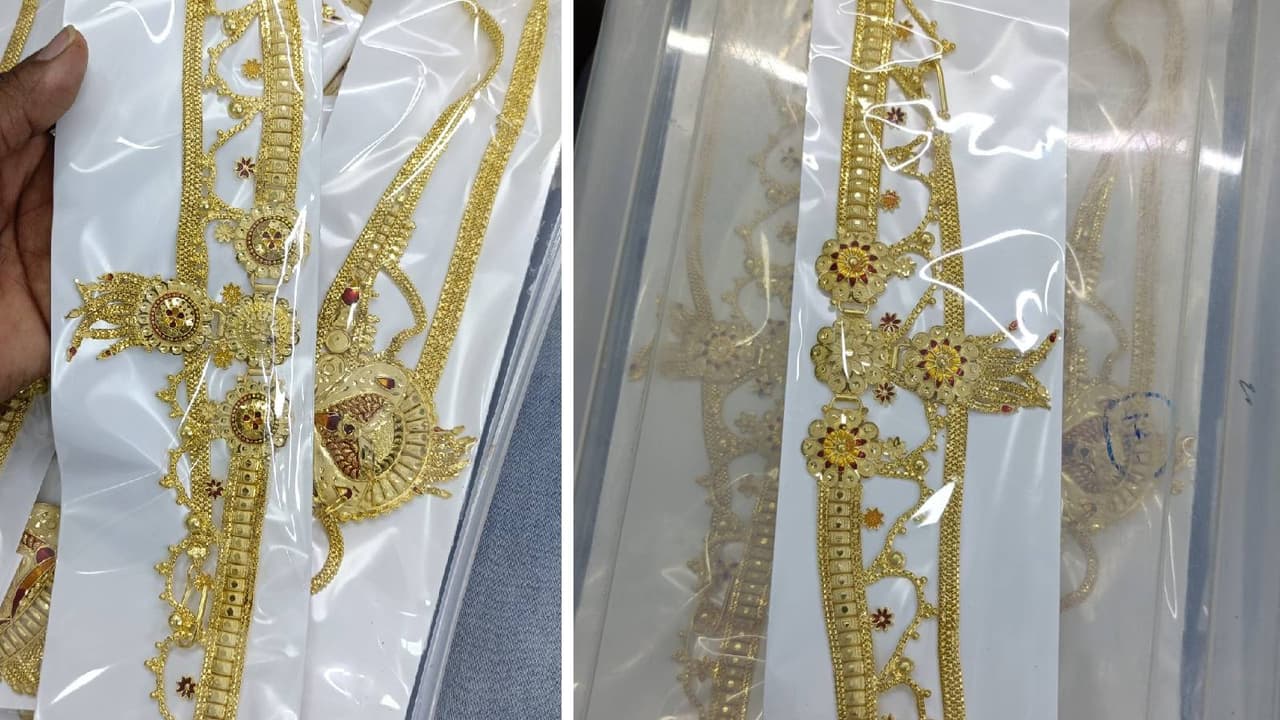 Kamarband Design: 1 gram gold plated waistband 3 fancy design, decorate in Karva Chauth with saree. One Gram Gold Plated Kamarband Design Idea for Karwa Chauth 2025