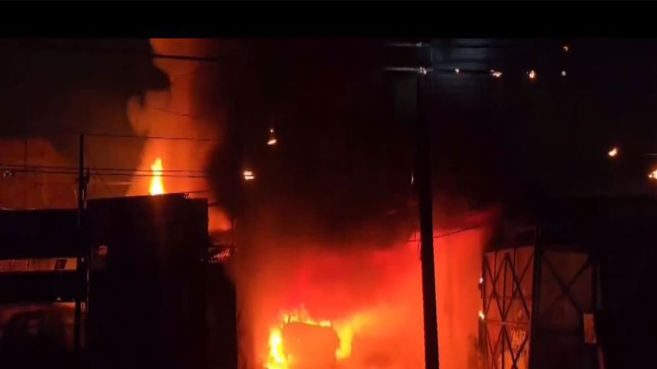 A massive fire broke out at a car garage in Kanpur’s Eidgah Chowk on Saturday. Multiple fire tenders were rushed to the spot and successfully extinguished the blaze. Officials have confirmed that no casualties or injuries were reported in the incident.