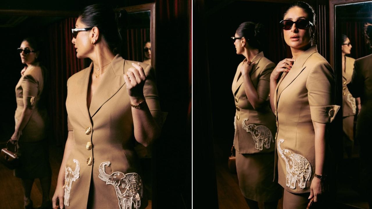 Diamond pieces by Milo Jewels India add subtle shine without distraction. Kareena’s slicked-back hair and defined eye makeup keep the focus firmly on the outfit, reinforcing the editorial, controlled mood of the appearance.