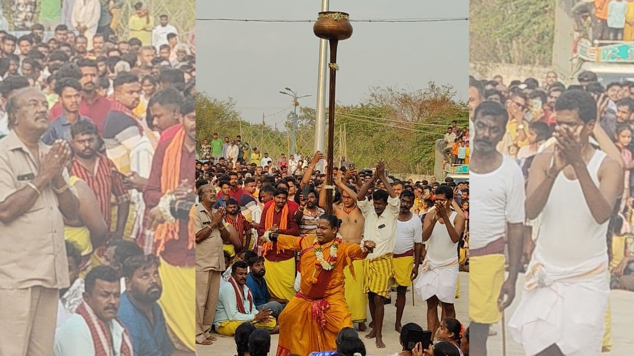 In the evening, Ganga pooja and Navagraha pooja were performed. On Monday morning, various rituals took place, including offering ‘tani’ to the Naga devatas, or serpent deities, presenting clothes to family elders, Veeragarara pooje, and a Rudrabhisheka for the main deity.