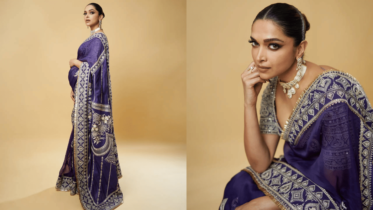 Channel your inner queen with deep plum or wine tones. This luxurious shade adds a mysterious allure to your festive look. It’s classy, less predictable, and perfect for an evening celebration under the moon. Pair with bold eyeliner, sleek hair, and oxidized silver jewellery for a fusion look.