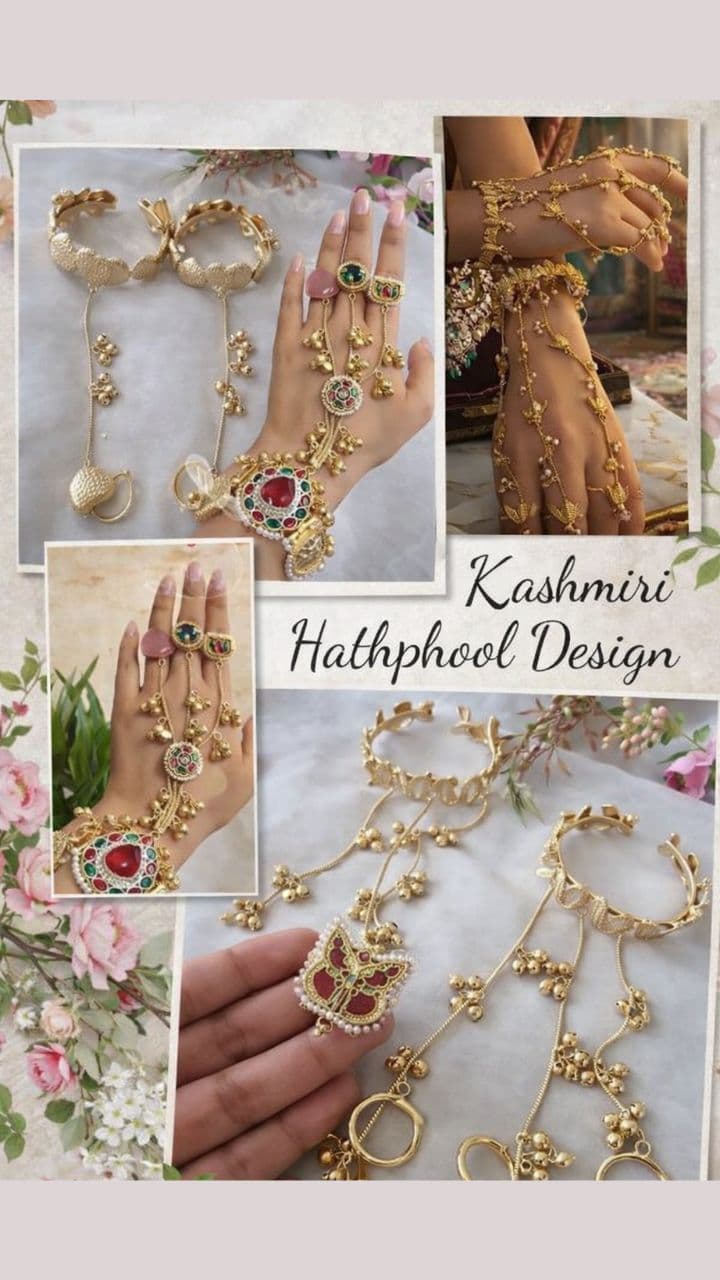 This Ghungroo Hathphool in half moon style is amazing. It has 2-3 ghunghru work with half moon, which will give a full look to the hands.