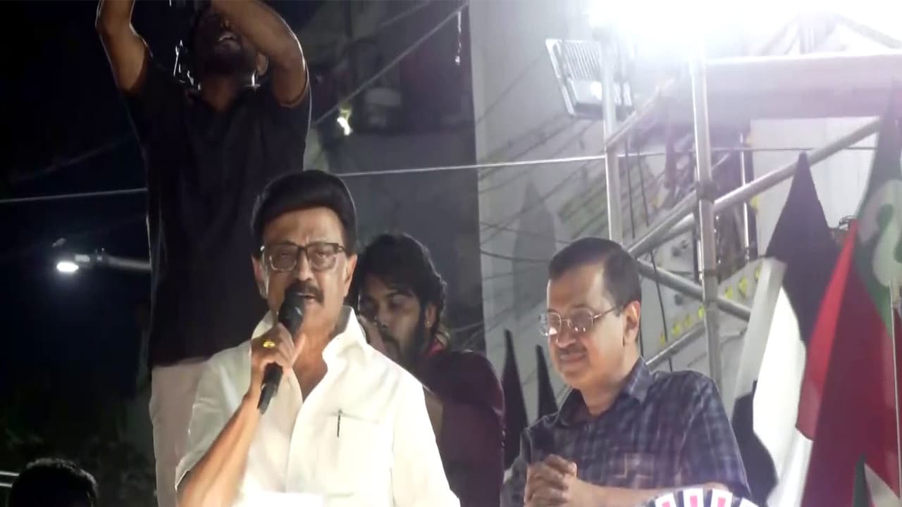 Arvind Kejriwal, campaigning in Chennai, praised Tamil Nadu CM M. K. Stalin as a ‘brother’ and lauded his governance in health and education. He highlighted Stalin’s ego-less approach and their mutual visits to study development models.