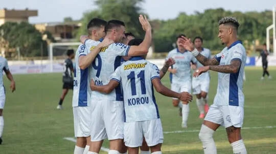 Within minutes, Adrián Luna’s corner found Juan Rodríguez, whose header rattled the woodwork, setting the tone for a relentless half. Noah Sadaoui looked lively in attack, while Nihal Sudheesh’s pace kept the capital side pinned deep.