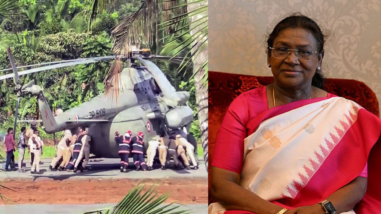 Shortly after President Draupadi Murmu left for Pamba by road, several policemen and the fire brigade team were seen taking out the wheels of the helicopter from small potholes formed after landing on the concrete. Let us inform you that President Murmu reached Thiruvananthapuram on Tuesday evening for his four-day official visit to Kerala. She left for Pathanamthitta district on Wednesday morning, where the hill shrine of Sabarimala is located.