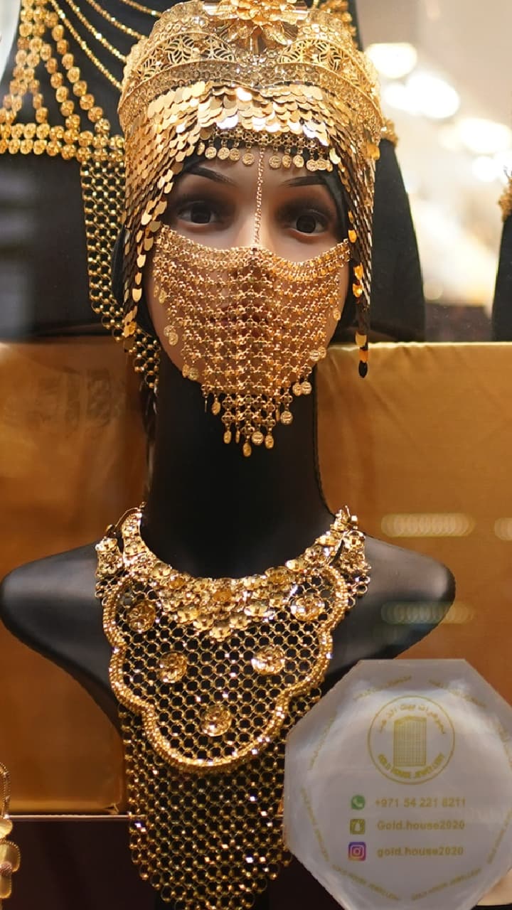 Khaleeji jewelery is the traditional identity of Saudi Arabia, UAE, Qatar and Kuwait. This includes thick necklaces, big bracelets, wide neckpieces and heavy head jewellery.