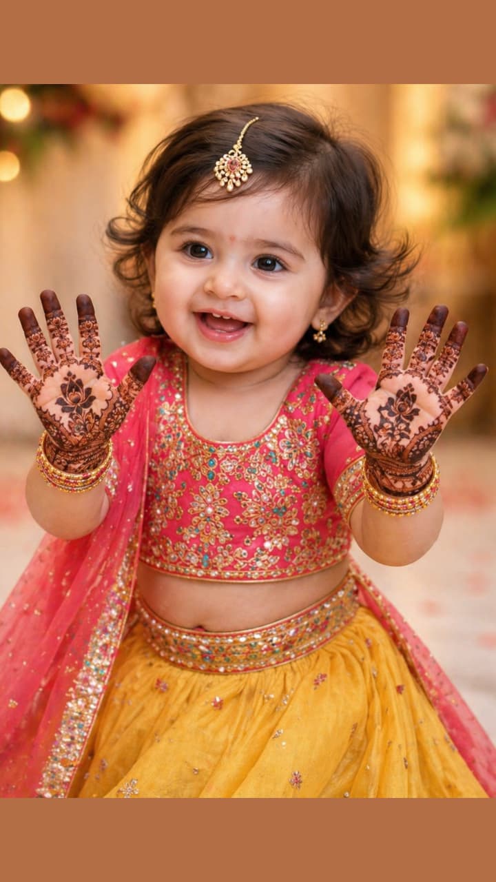 Back hand mehndi on Arabic and booti work is best for 5-10 year old girls. A chain has been given till the fingers making a bracelet on the wrist. With this finger henna will add to the minimalist look.