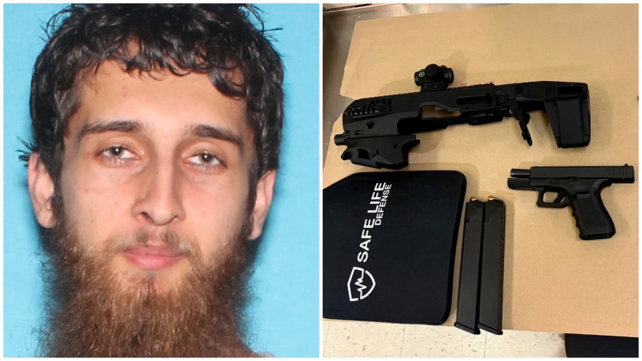 Police arrested 25-year-old Luqmaan Khan close to midnight on November 24, after spotting him suspiciously in a closed public park. Officers searched his pickup truck and found a .357 Glock pistol modified with a kit to function as a semi-automatic rifle, several loaded 27-round magazines, body-armor plates, binoculars, a laptop, and a marble-cover composition notebook.