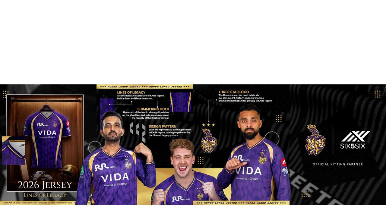 Three-time champion Kolkata Knight Riders (KKR) have unveiled a fresh new jersey ahead of TATA IPL 2026, designed in the theme of Lines of Legacy, according to a release from KKR.