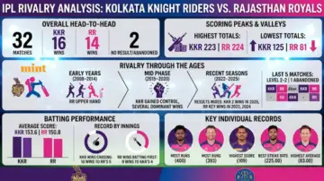 Kolkata and Rajasthan share one of the most evenly balanced rivalries in IPL history. Across 32 matches, KKR lead with 16 wins, while RR have 14. Two matches ended without a result.