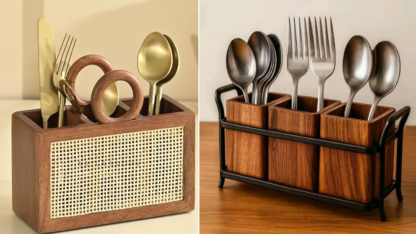If the interior of your kitchen is in wooden theme, then wooden finish cutlery stand looks very beautiful. It gives a warm and luxurious look to the kitchen. It is also great to keep on the dining table.