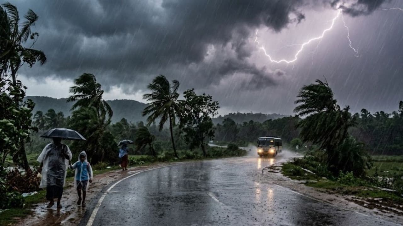 The Kalbaisakhi storm situation will intensify in North Bengal today. All districts will see light to moderate rain. A heavy rain warning, up to 110 mm, is in place for Alipurduar and Jalpaiguri. Five districts, especially Malda, North and South Dinajpur, Darjeeling, and Jalpaiguri, are likely to experience Kalbaisakhi storms with wind speeds of 50-70 km/h. Hail and lightning are also possible in Darjeeling, Jalpaiguri, and Coochbehar.