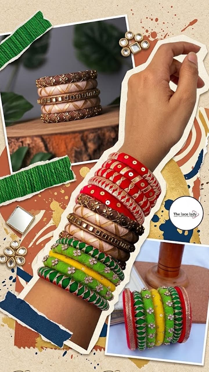 Lace Bangles: These 7 bangles of Gota Patti lace, give a traditional look to your hands. Gota Patti Lace Bangles And Kada For Women Trendy Chudi Design