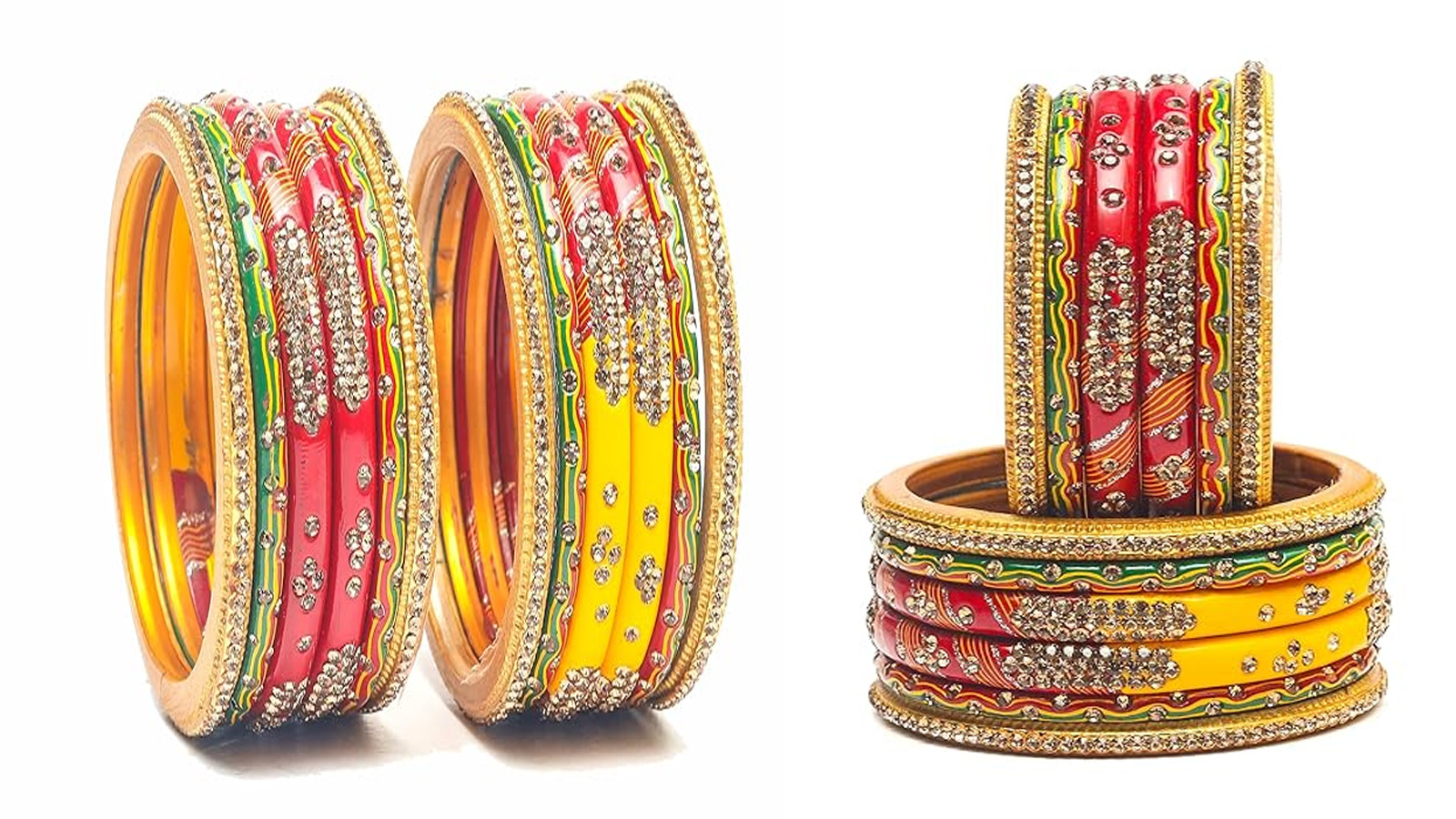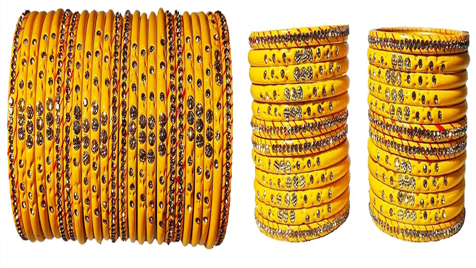 This Lahthi has been made in Muzaffarpur. The yellow colored lacquer bangles have been given a glowing look by applying gems on them. This cute set is available on Amazon. You can style it during the Haldi ceremony in the wedding. You can buy it from Amazon for Rs 399.