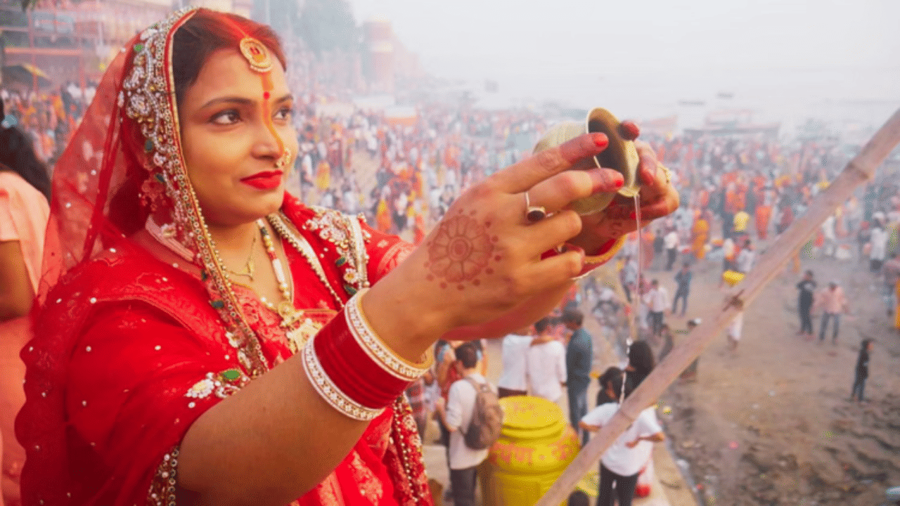 New Delhi: Chhath Puja 2025 has begun, and across North India, women are seen applying orange sindoor from the nose to the forehead. This vibrant ritual is more than just tradition—it’s a symbol of devotion, purity, and feminine energy. As millions celebrate Chhath Puja, the sight of women adorned with sindoor is everywhere, from homes to ghats. But why orange? And why this specific application? Let’s uncover the spiritual and scientific reasons behind this unique custom.
