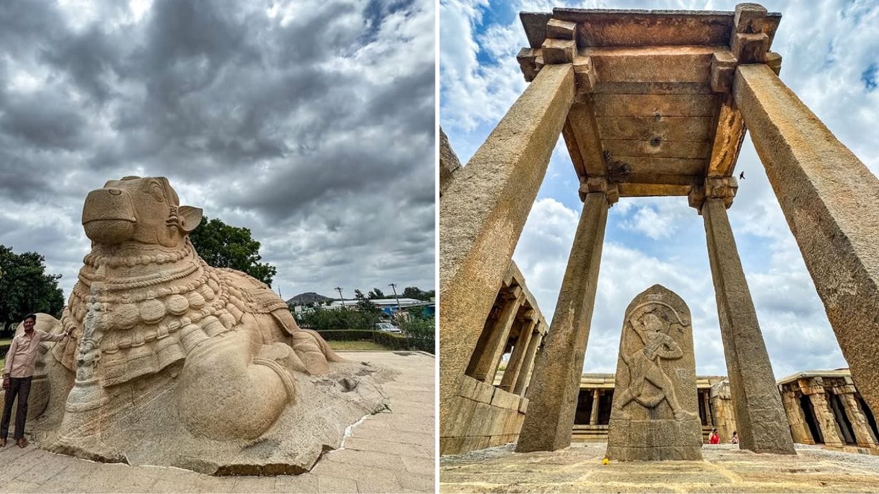 Facing the temple complex is a colossal Nandi sculpture carved from a single stone block. Counted among the largest monolithic Nandi statues in the world, it reflects the advanced stone-carving skills of the Vijayanagara period.